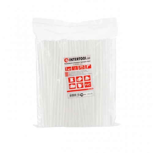 Комплект стрижнів клейових прозорих 7.4мм*200мм, уп. 1 кг INTERTOOL (RT-1036)