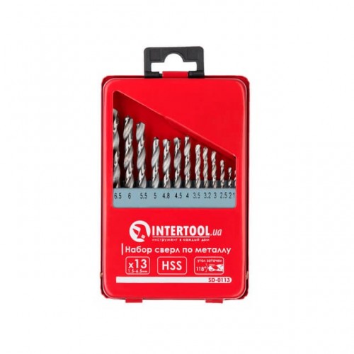 Набір свердел по металу HSS 13шт (1.5-6.5), полірована сталь INTERTOOL (SD-0113)